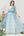 En linje Fyrkantig hals Ljusblå Tiered Blommig Lång Balklänning med Volanger