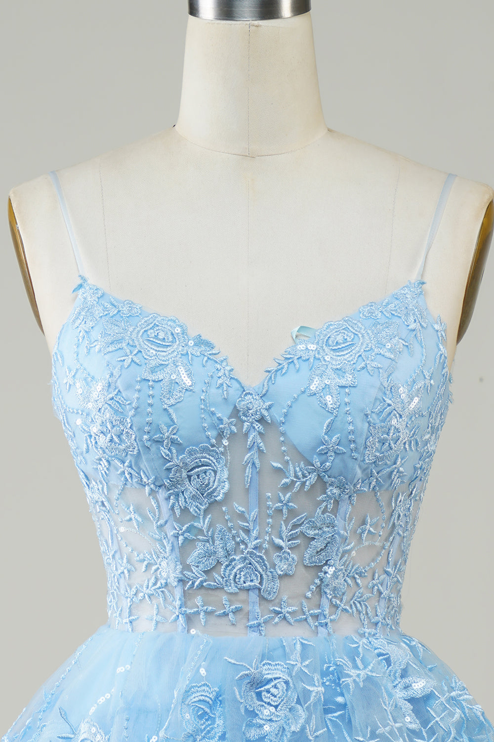 Underbara A Line Spaghetti Remmar Svart Glittrande Korsett Homecoming Klänning
