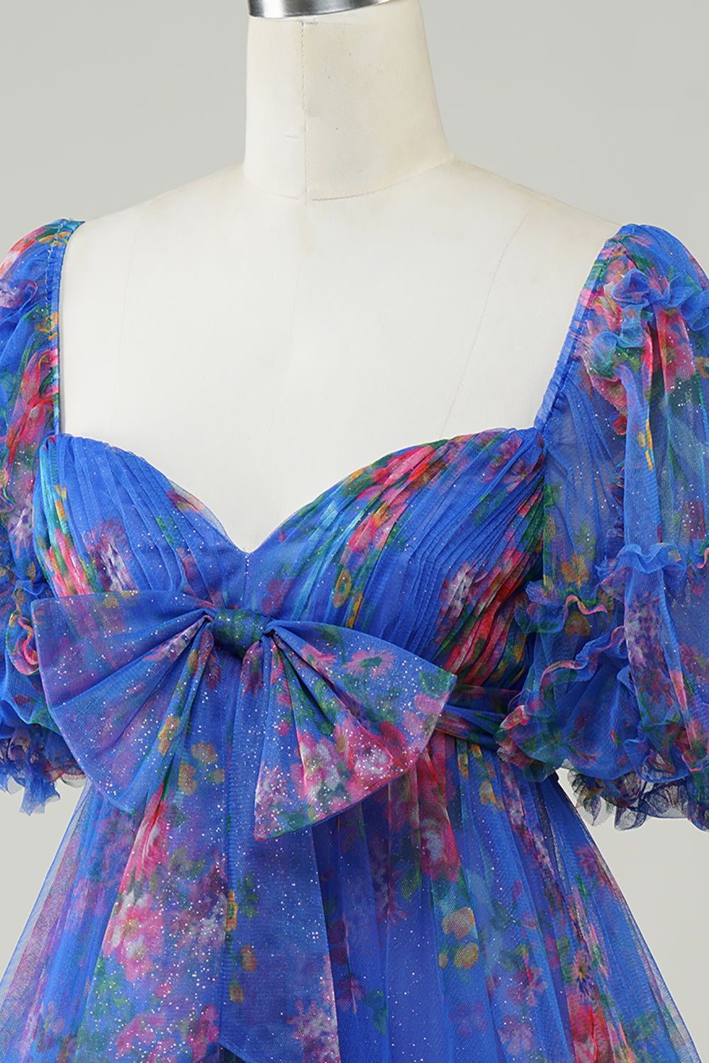 Varm Rosa Tryckt söt Hemkomstklänning med Rosett