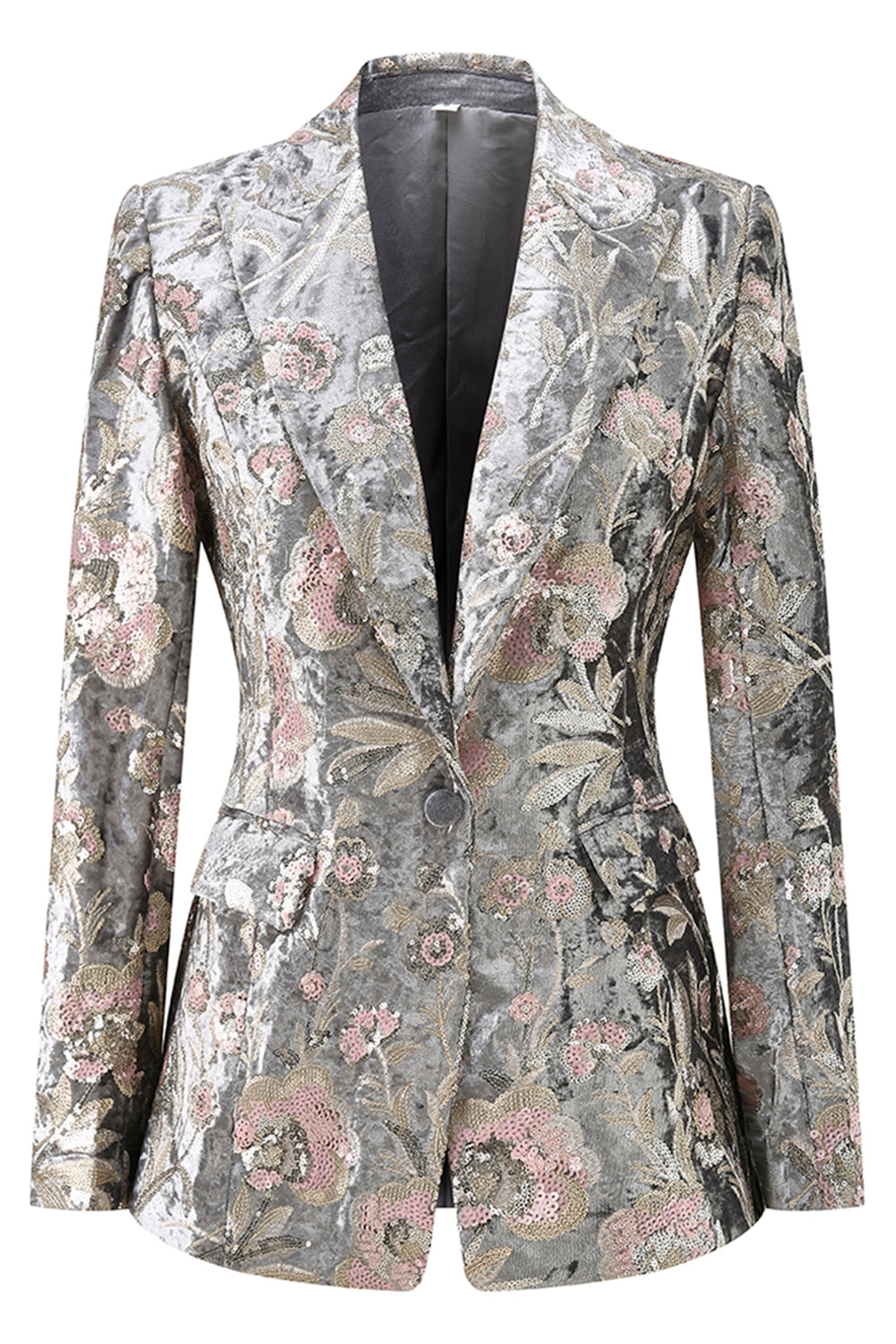 2-delad glittrande grå topp kavajslag kvinnor kostymer