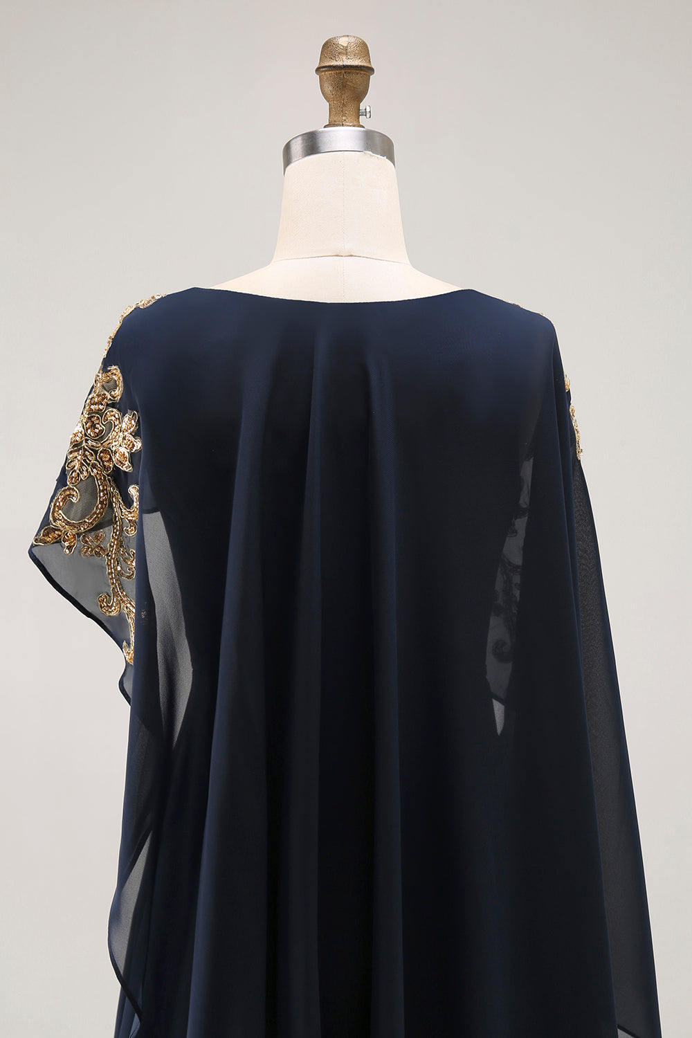 Marinblå Slida Applicerad Mamma Till Bruden Klänning Med Sjal