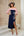 Marinblå A-linjeformad V-ringad 2-delad klänning för brudens mor med veck