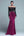 Metallisk lila enaxlad lång balklänning med draperad volangdetalj