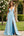 Satin Himmelsblå Spaghetti Remmar Rynkad A Line Balklänning med slits