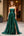 Glitter Mörkgrön A Line Axelbandslös Rynkad Balklänning med Slits