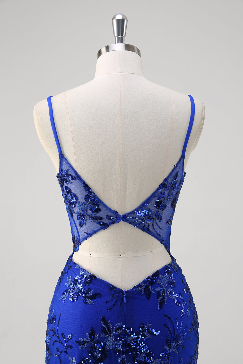 Glittrande vinröd sjöjungfru lång paljett blommig balklänning med slits