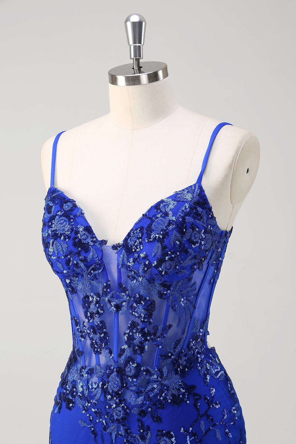 glittrande mörkgrön sjöjungfru spaghetti remmar korsett paljetter broderi tyll lång balklänning