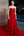 En linnehalterplisserad tyllklänning med rygglös lång röd matta-klänning
