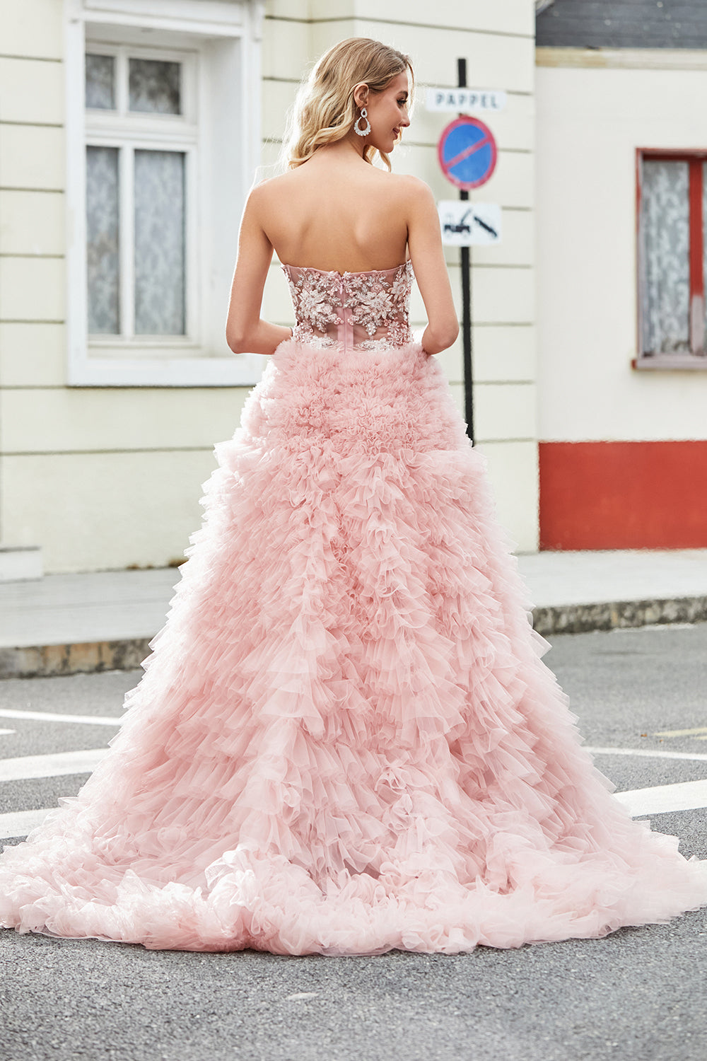 A-linje Axelbandslös pärlstav Rodnande Tiered Lång Balklänning