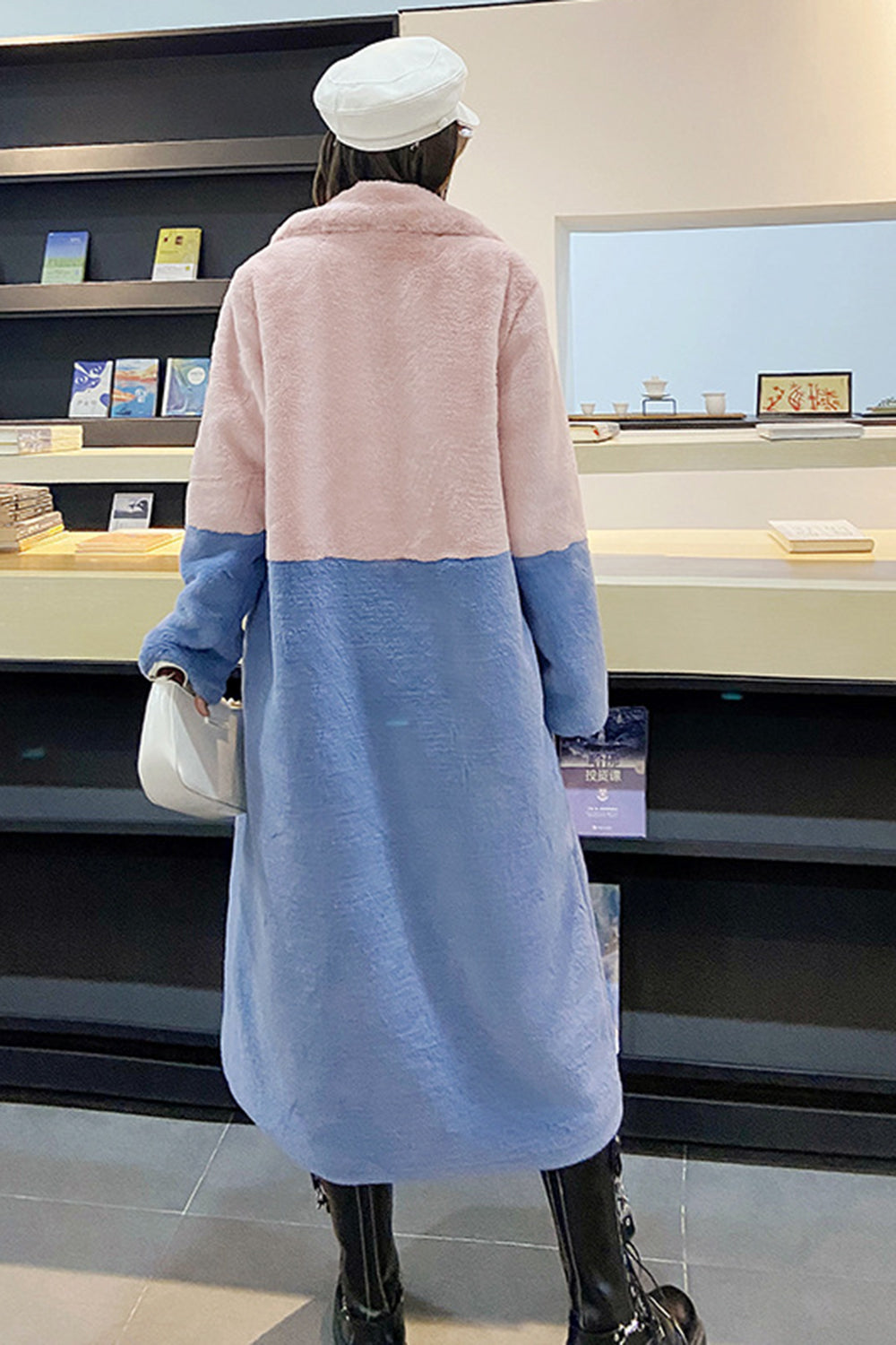 Fuchsia och orange fluffig fuskpäls lång kappa