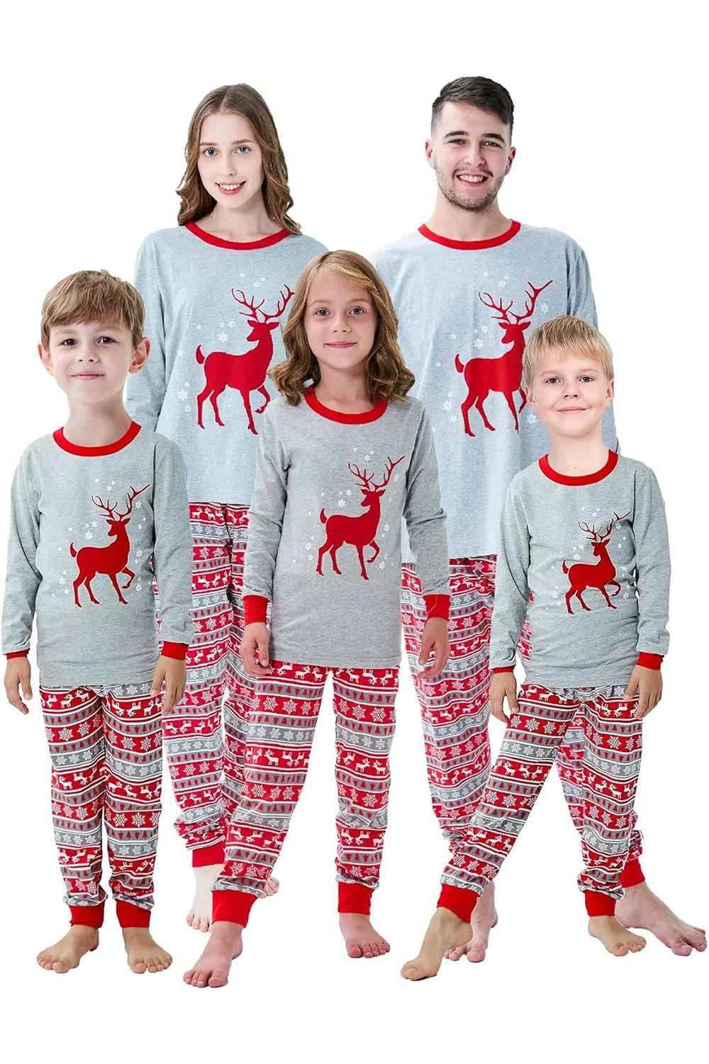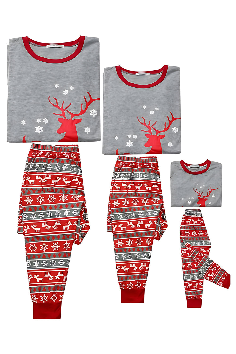Grå, Röda, Ränder, Älg Tryck, Jul, Familj, Matchande Pyjamas Set