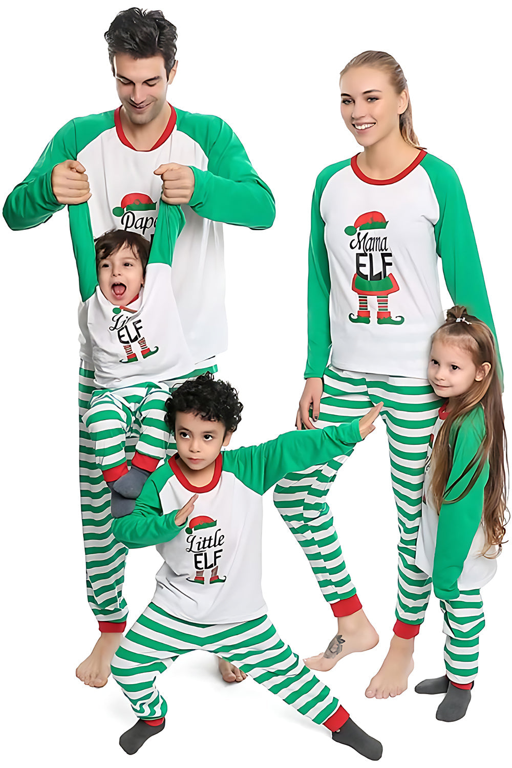 Gröna Ränder Tryck Jul Familj Matchande Pyjamas Set