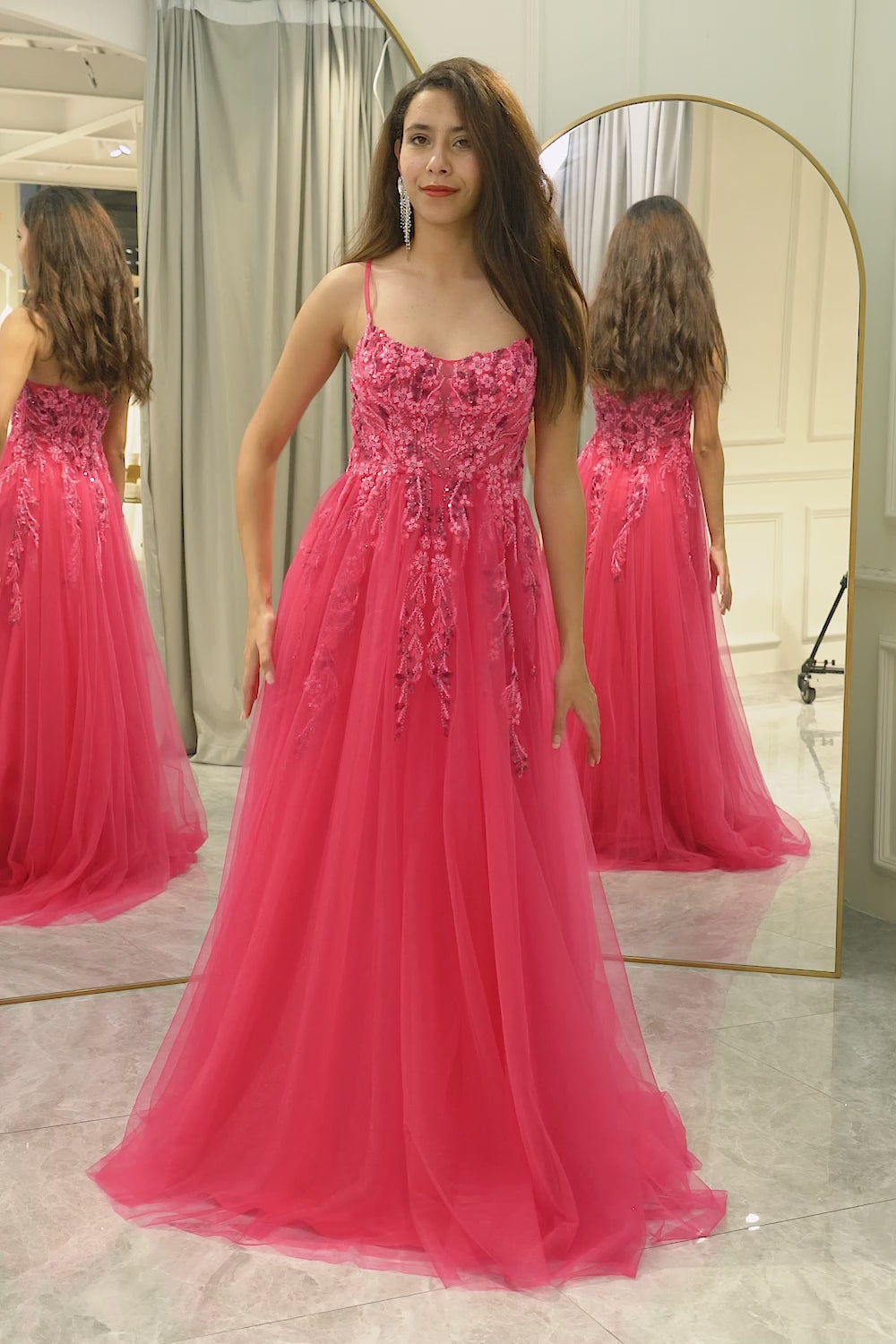Spaghetti Remmar A Line Röd Balklänning med Applikationer