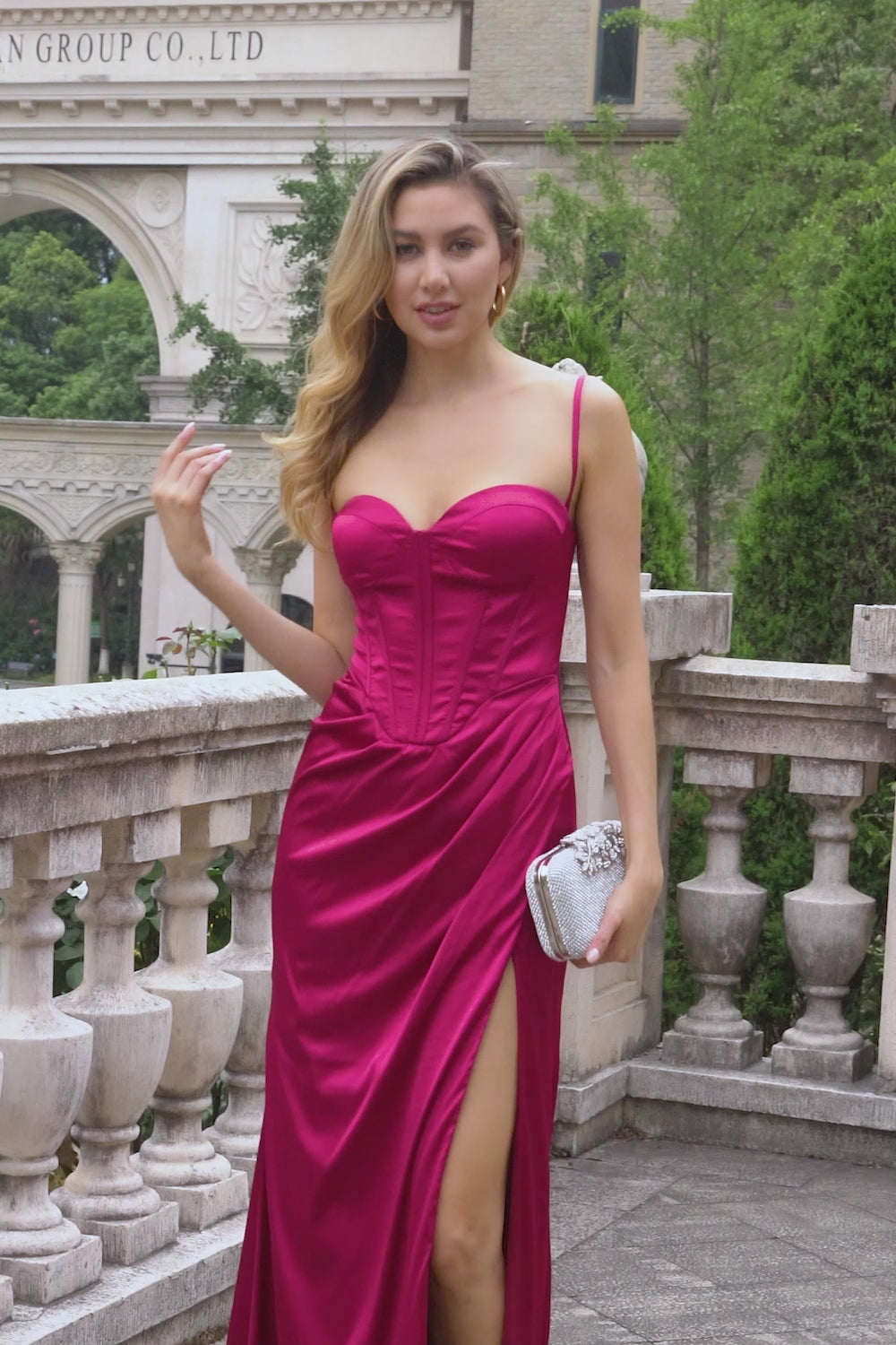 Vinröd sjöjungfru spaghetti remmar Lång korsett balklänning med slits