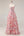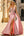 Ljusrosa A-linje med blommönster i korsett, lång balklänning med volanger