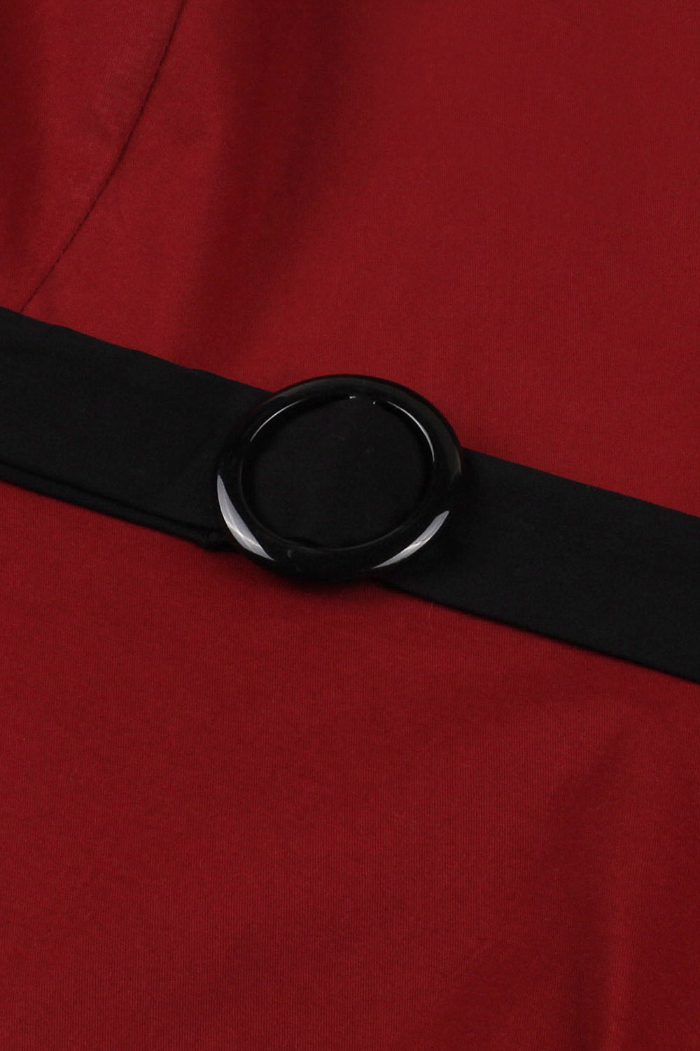 Röd A Line 1950-tals Swing Klänning med Skärp