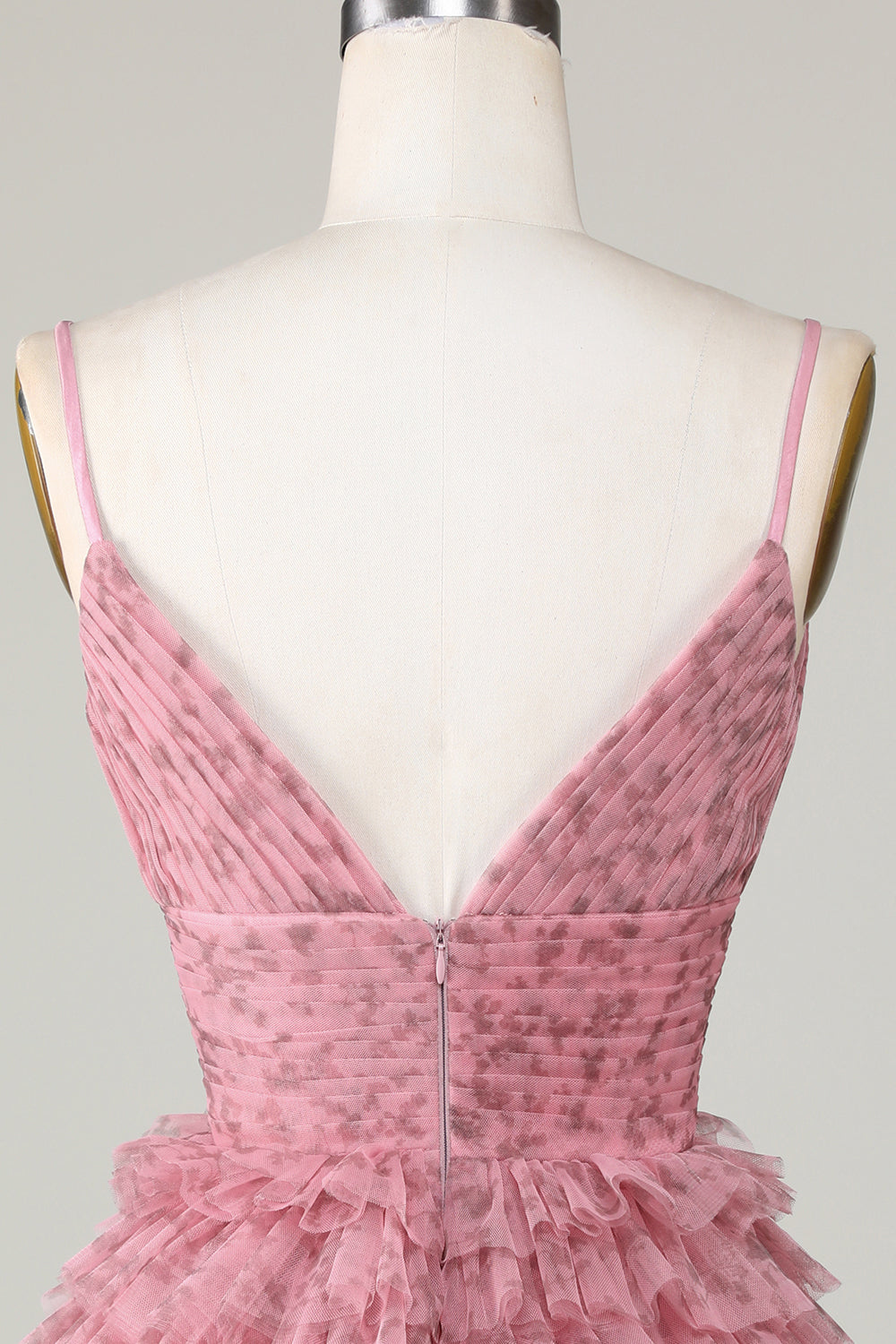Söta A-linje Spaghettiband Rodna Homecoming Klänning med Volanger