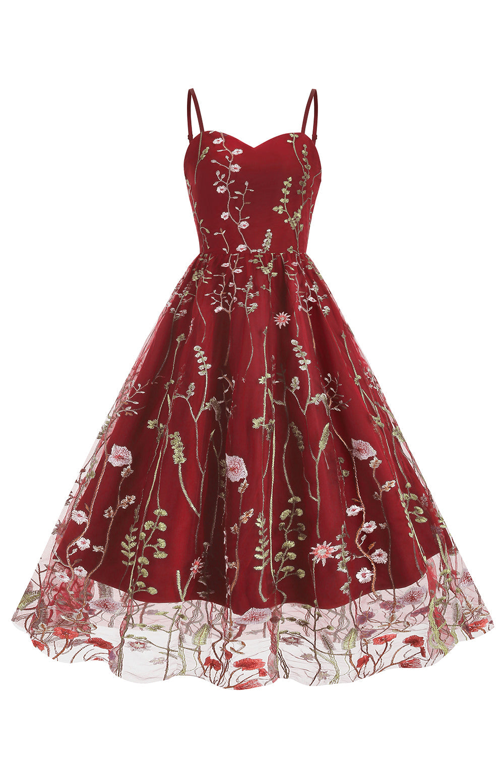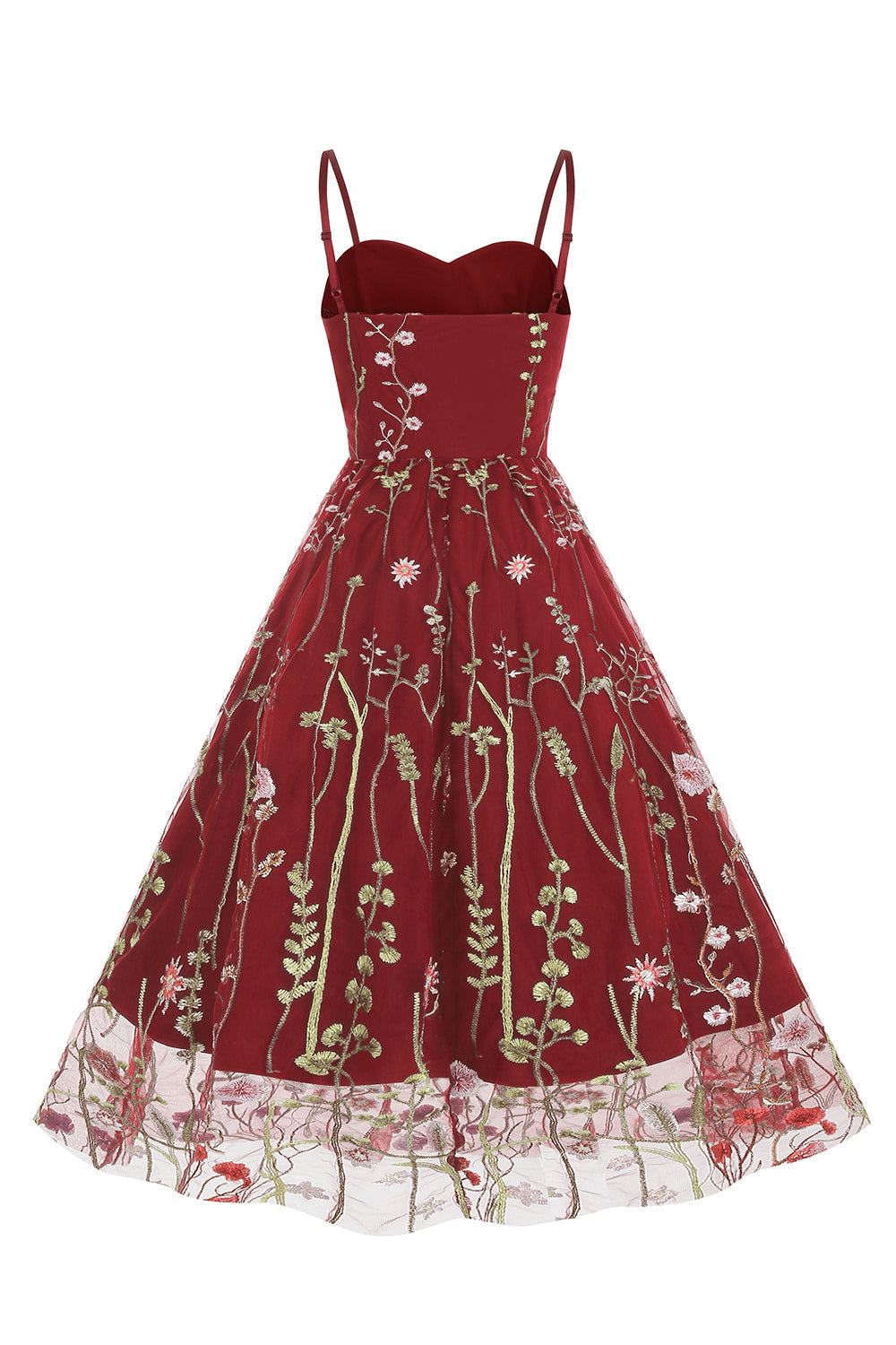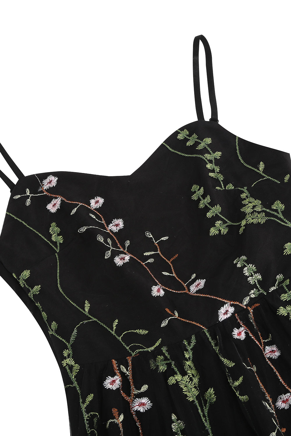 Svart Spaghettiband En Linje 1950-Tals Vintage Klänning med Broderi
