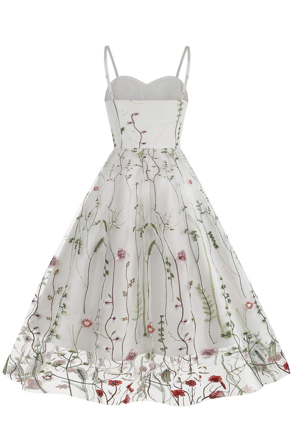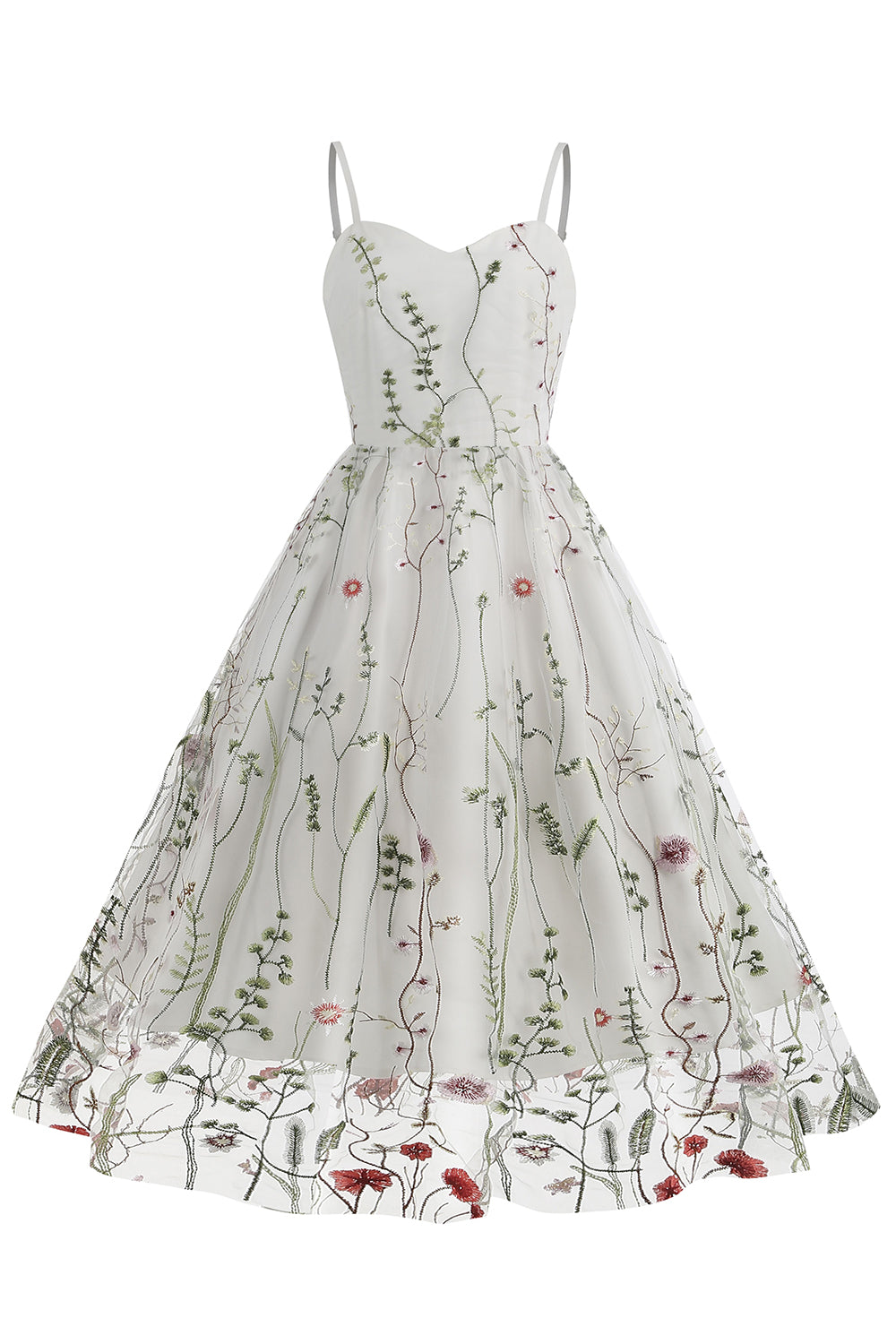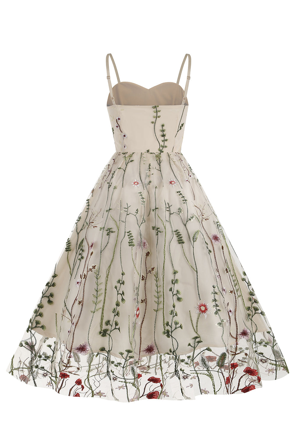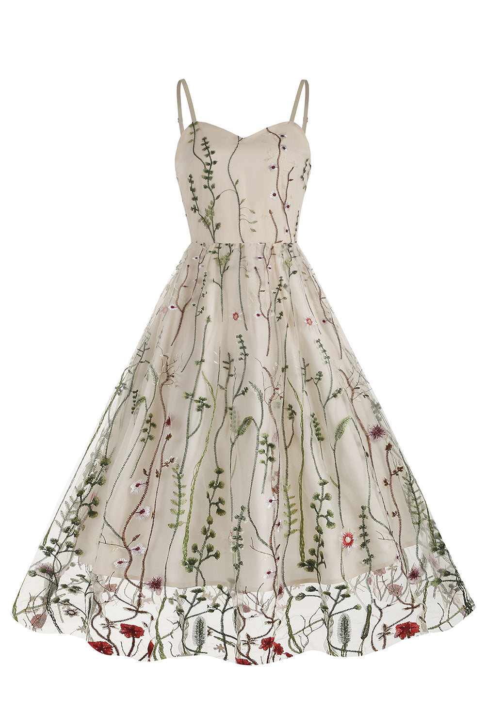 Svart Spaghettiband En Linje 1950-Tals Vintage Klänning med Broderi