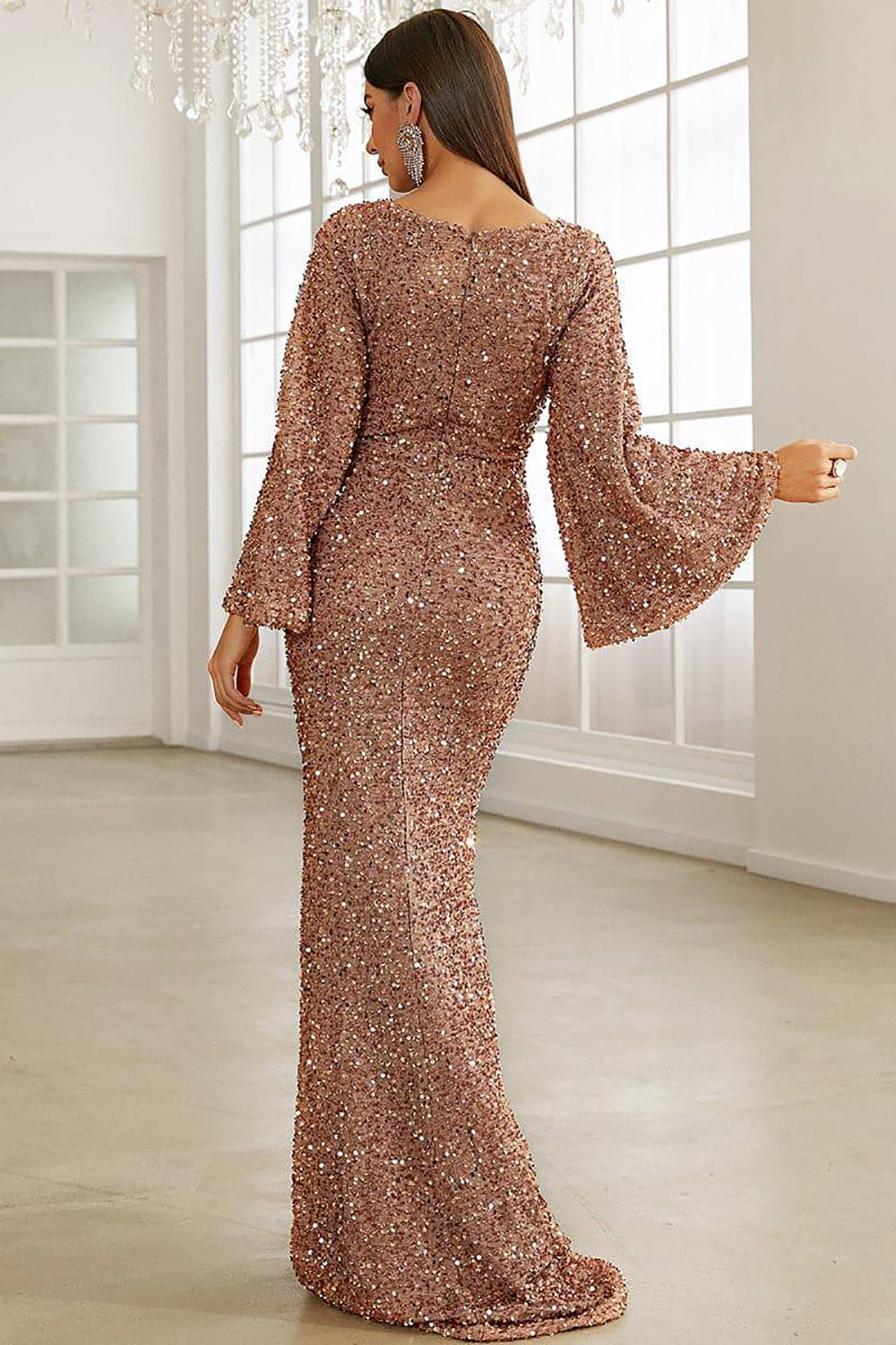 Vinröd glittrande paljett sjöjungfru lång semester klänning