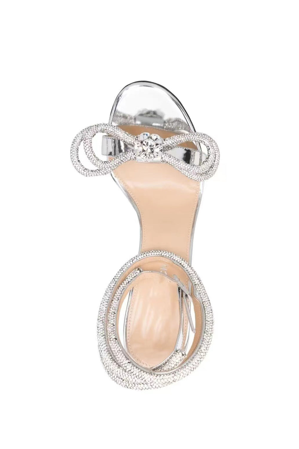 Glittrande Silver Strass Bow Ankelremmar Öppna Tå Höga Klackar