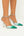Glittrande mörkgröna strassstenar med stilettklackar och högklackade sandaler med fotledskedja