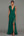 Mörkgrön v-ringad volang, lång formell klänning med rynka och slits
