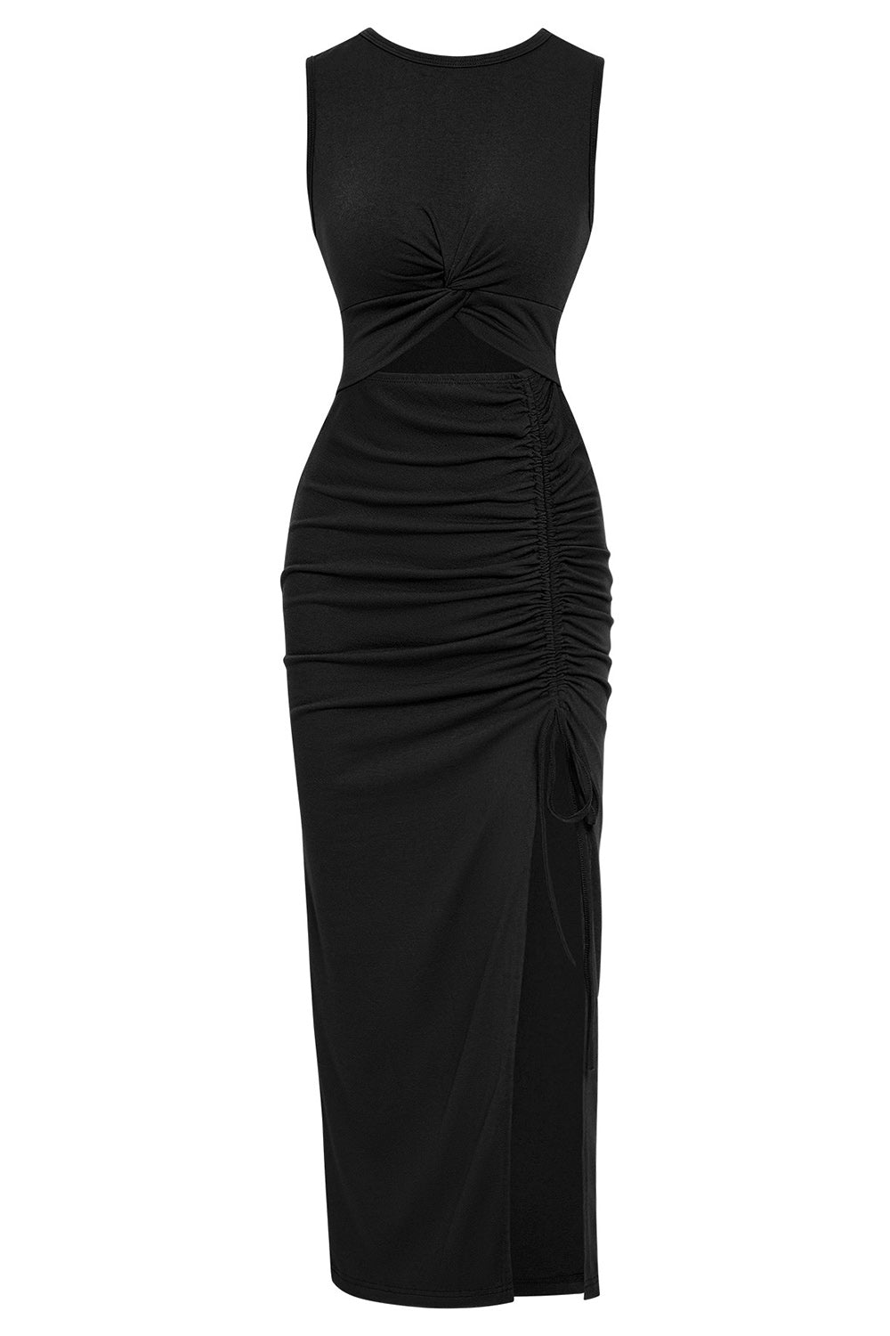Ärmlös bodycon cutout lång sommarklänning med slits