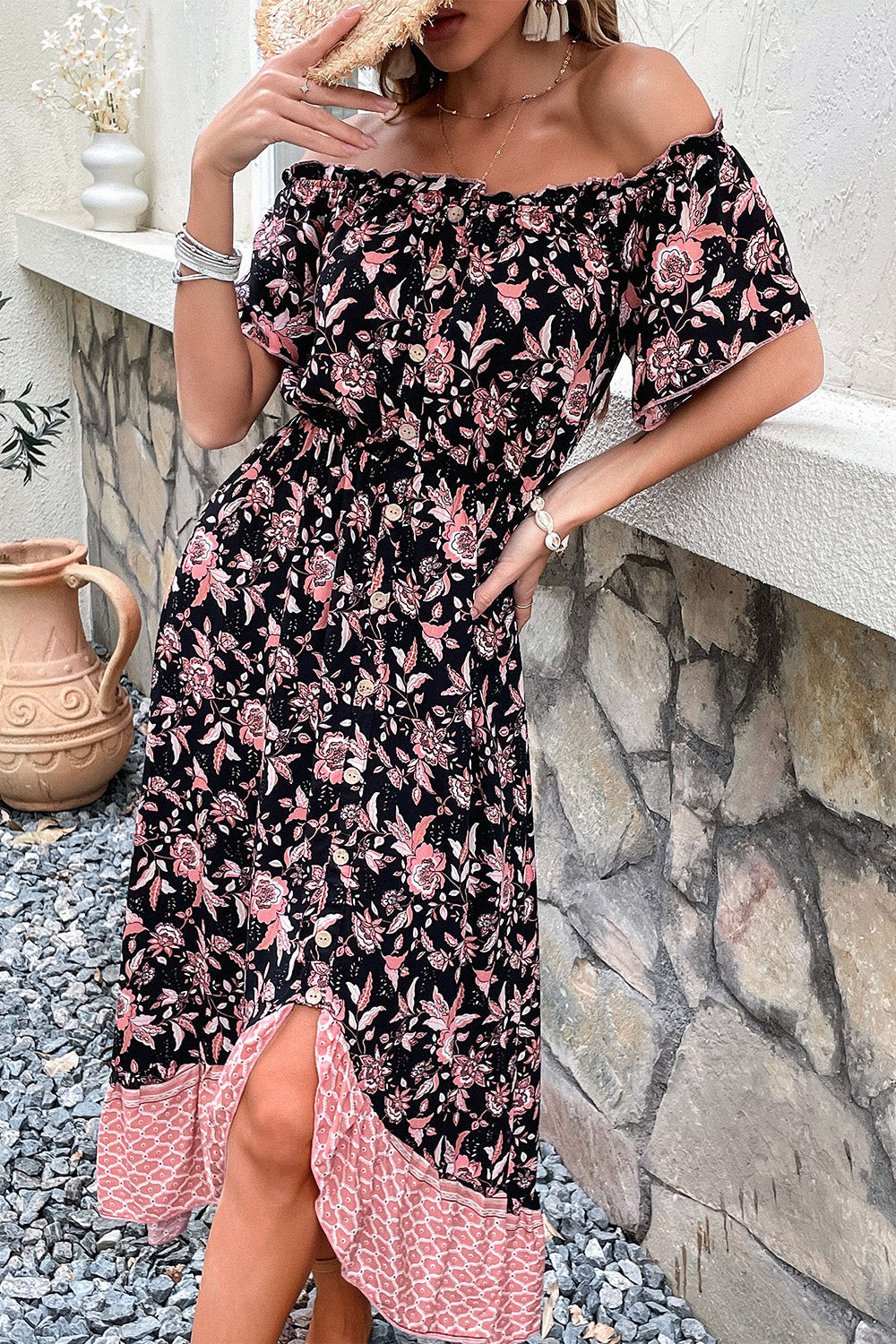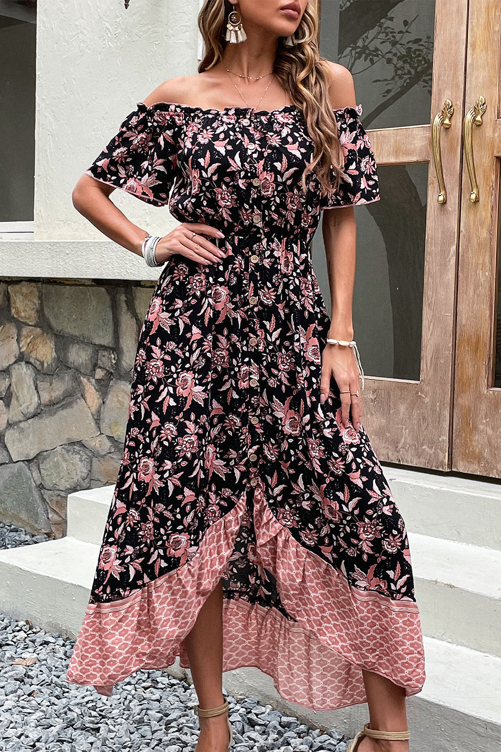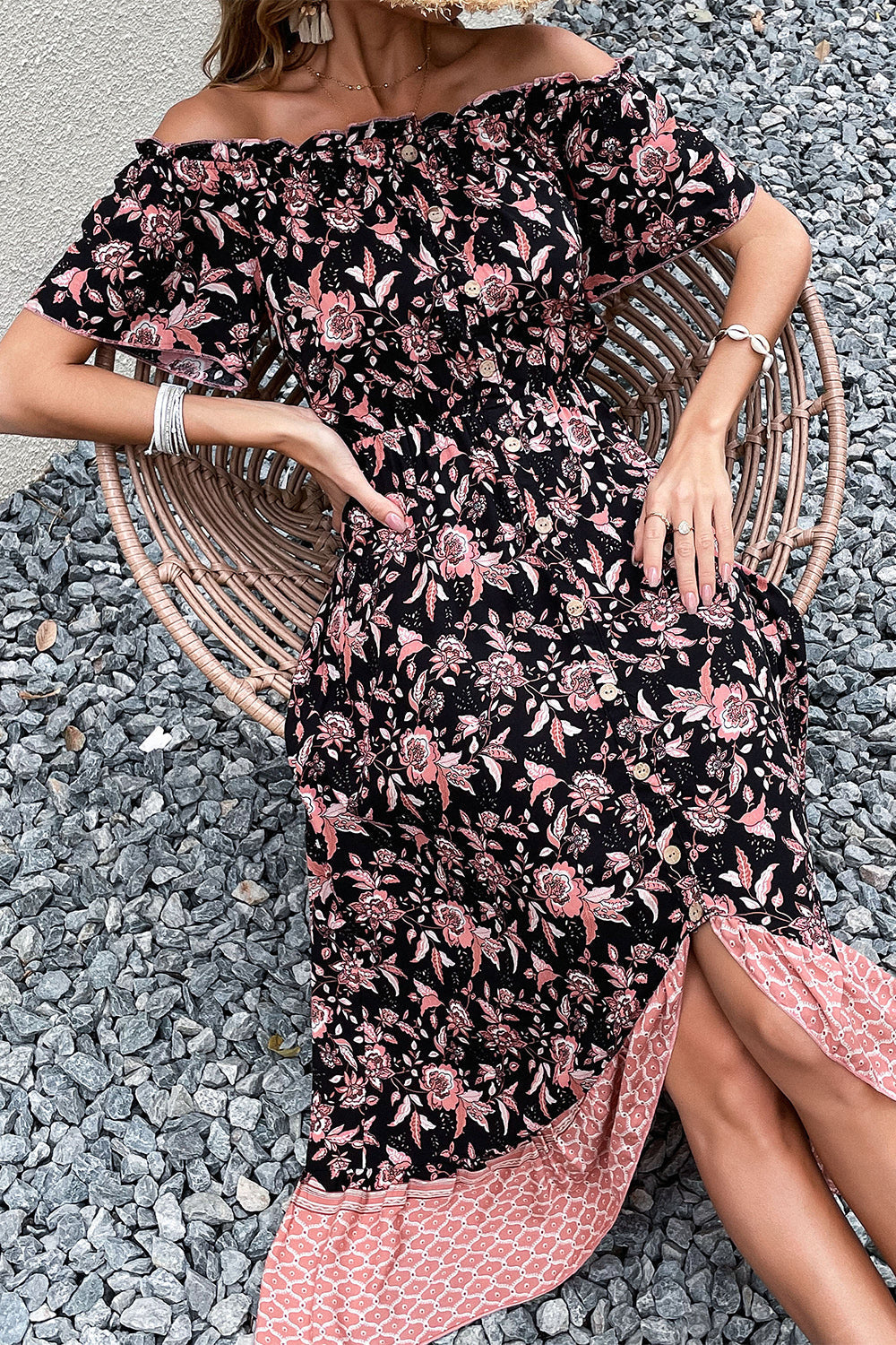 Off-shoulder Svart Boho Sommarklänning