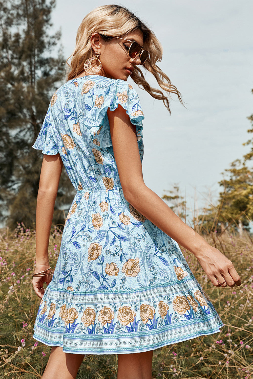 Blush Flower Print Sommar Boho Klänning