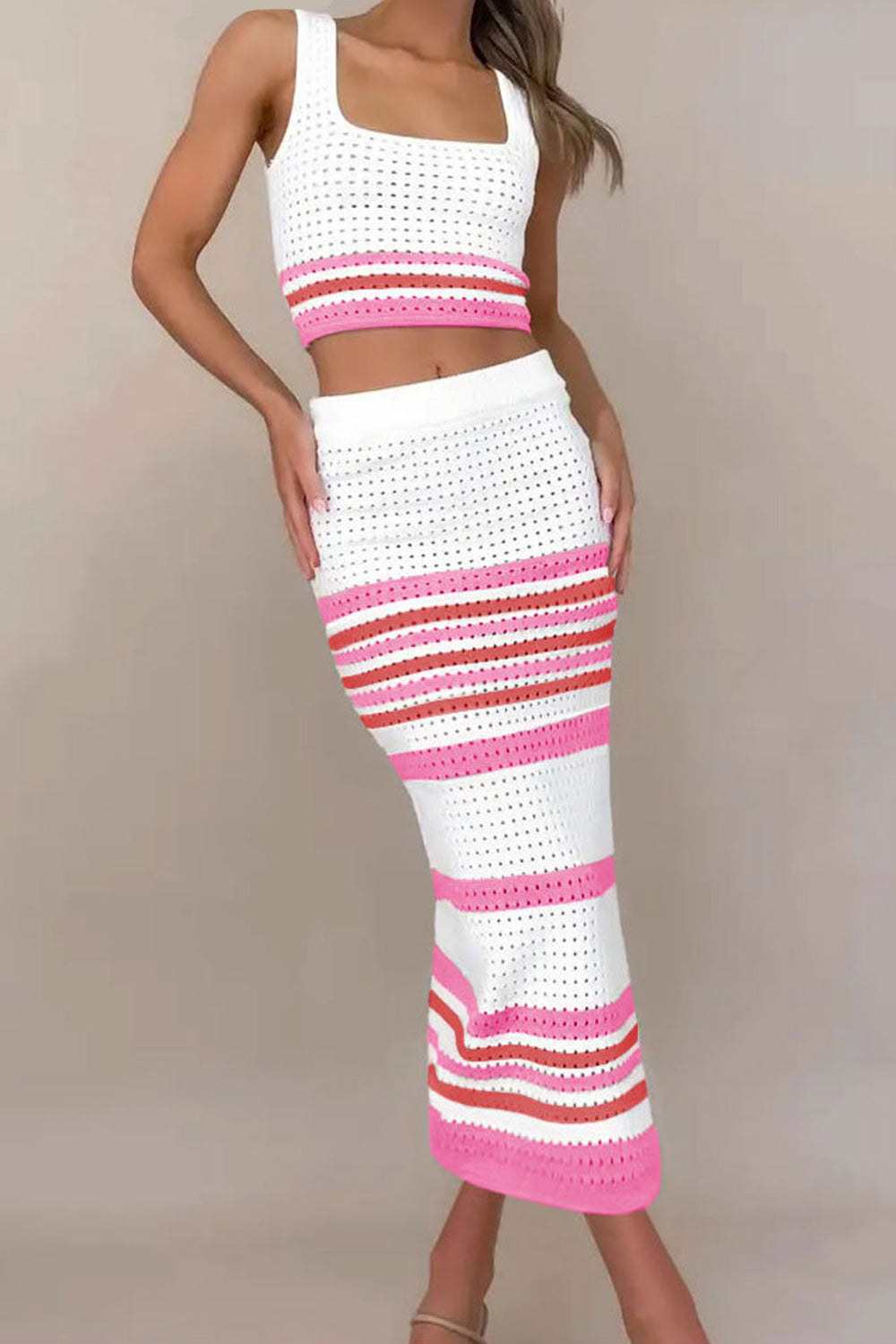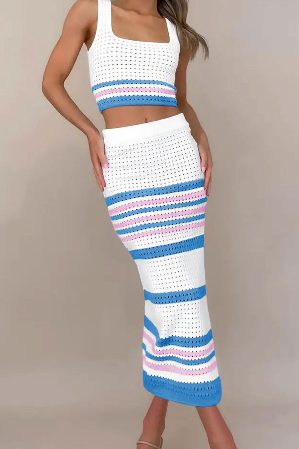 Ränder stickad bodycon 2-delad lång sommarklänning