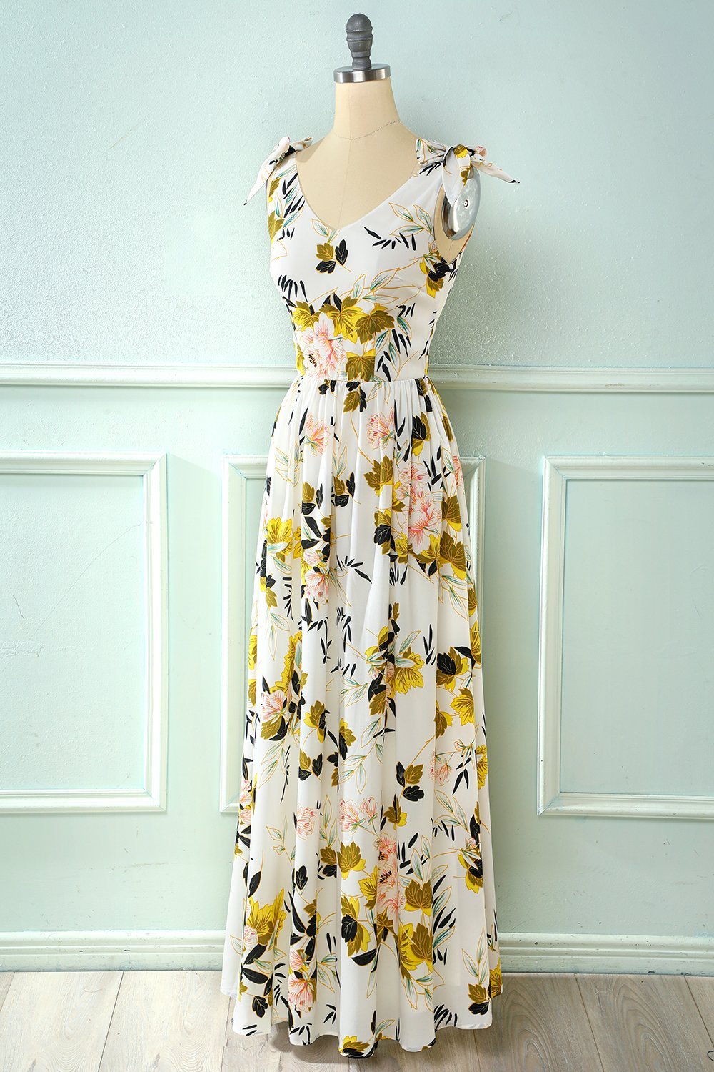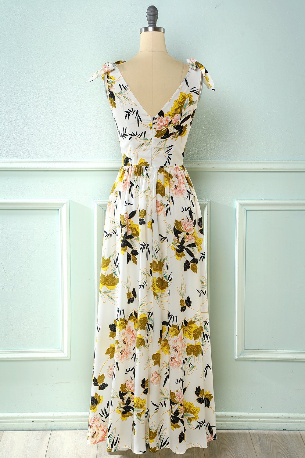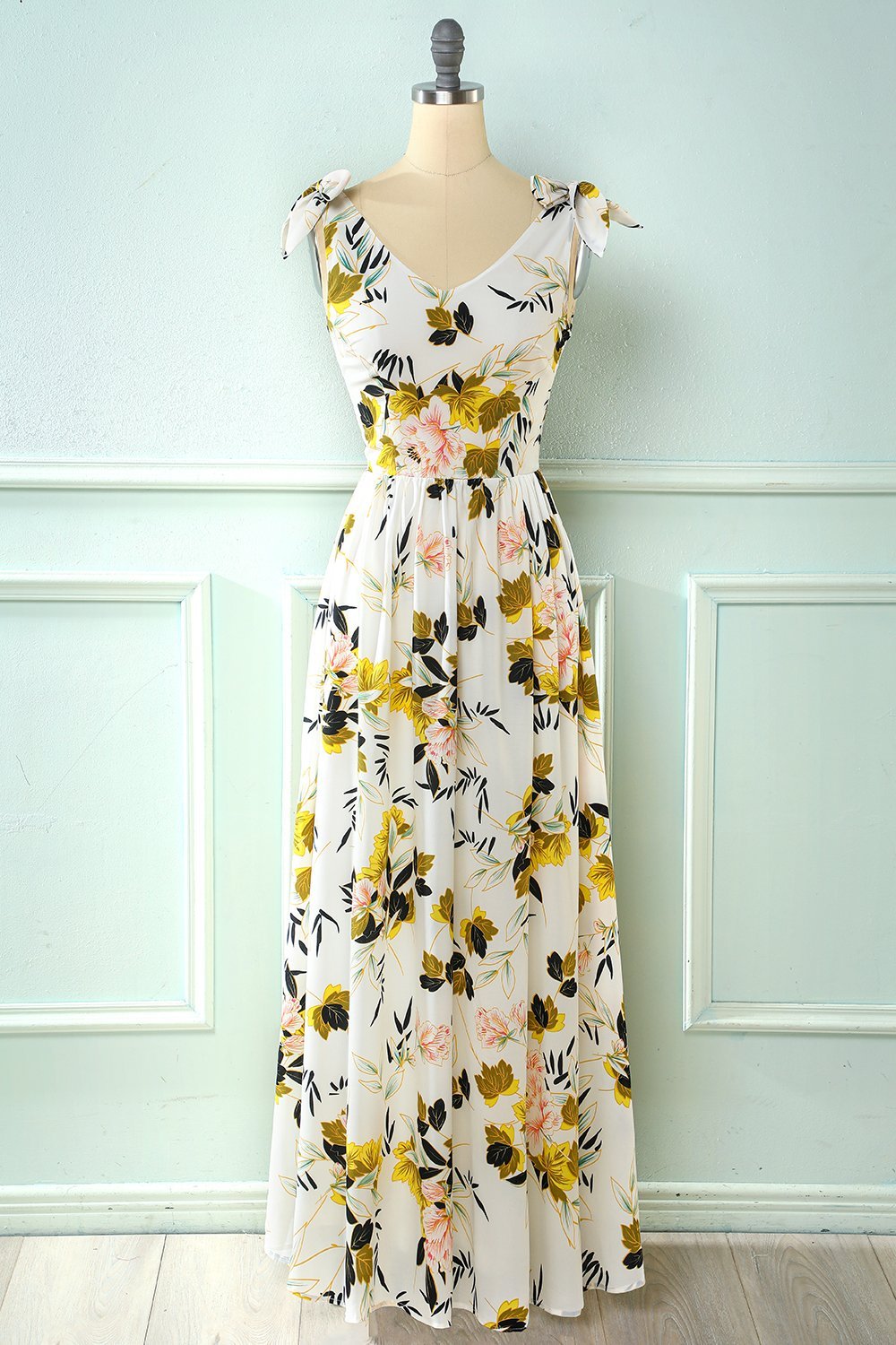 Vit blommig Maxi Boho sommarklänning