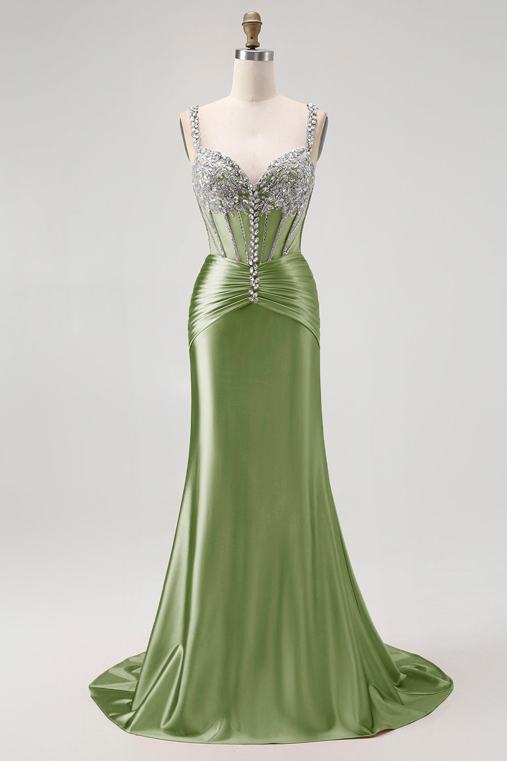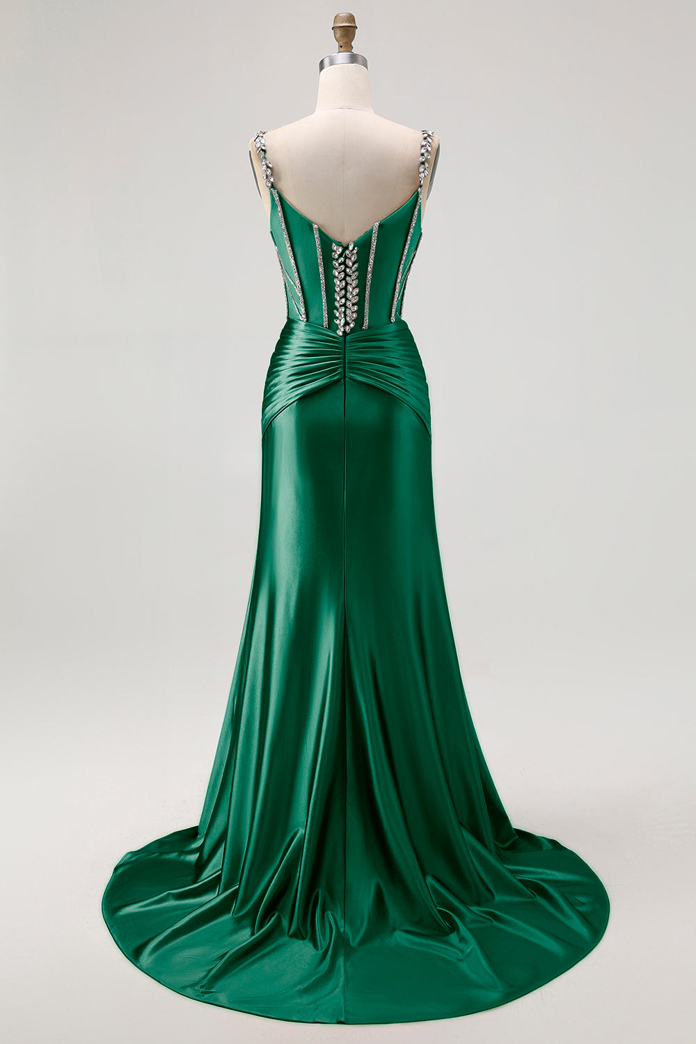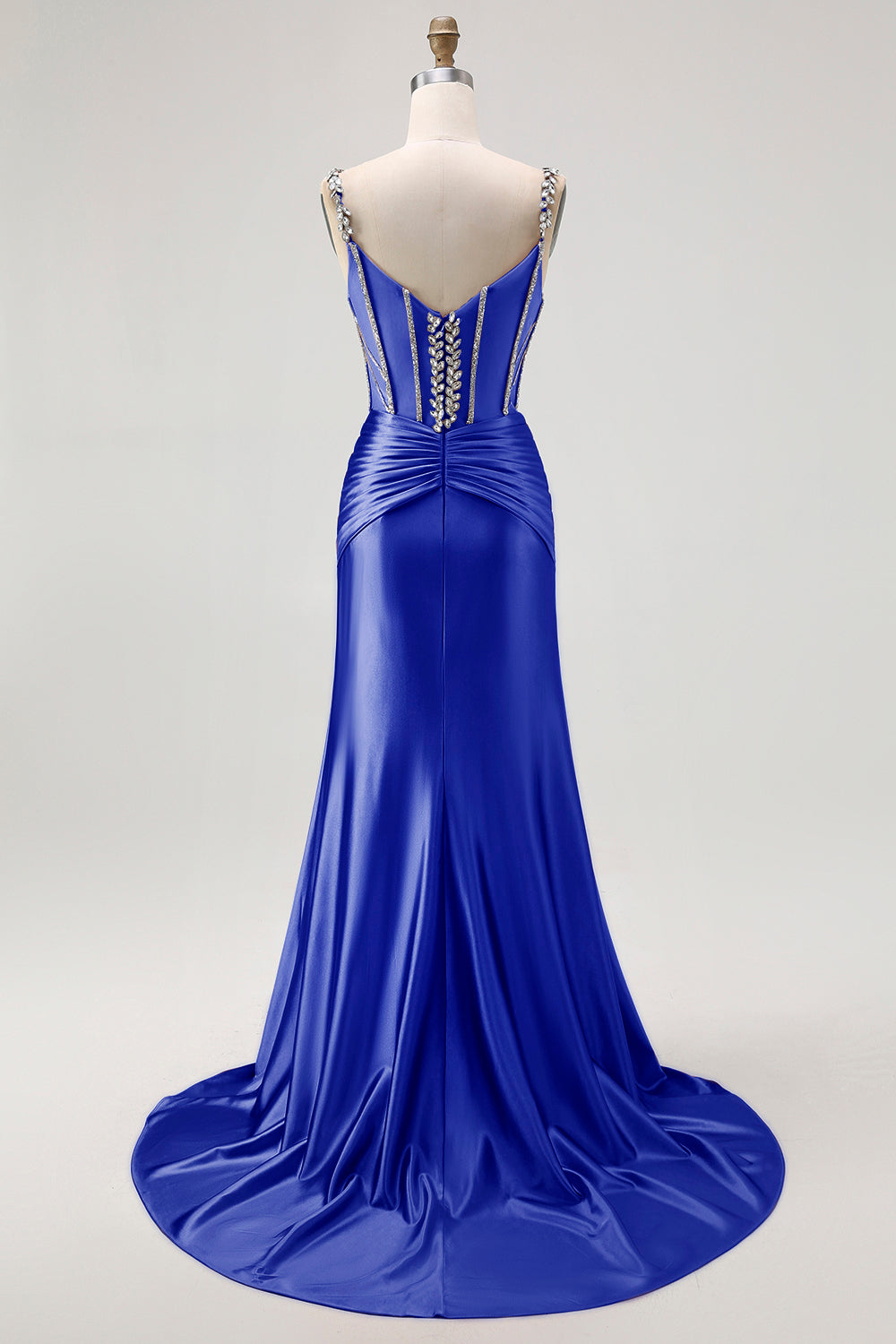 Sjöjungfru Spaghettiband Korsett Rouge Lång Balklänning med Strass Stenar
