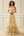 Axelrakellös A-linje tyll gul blommig lång balklänning med volanger
