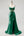 Grön sjöjungfru med en axel pärlprydd korsett, rynkad lång balklänning med slits