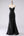 Glittrande svart sjöjungfrubroderad spetsuppgång bak lång balklänning med slits