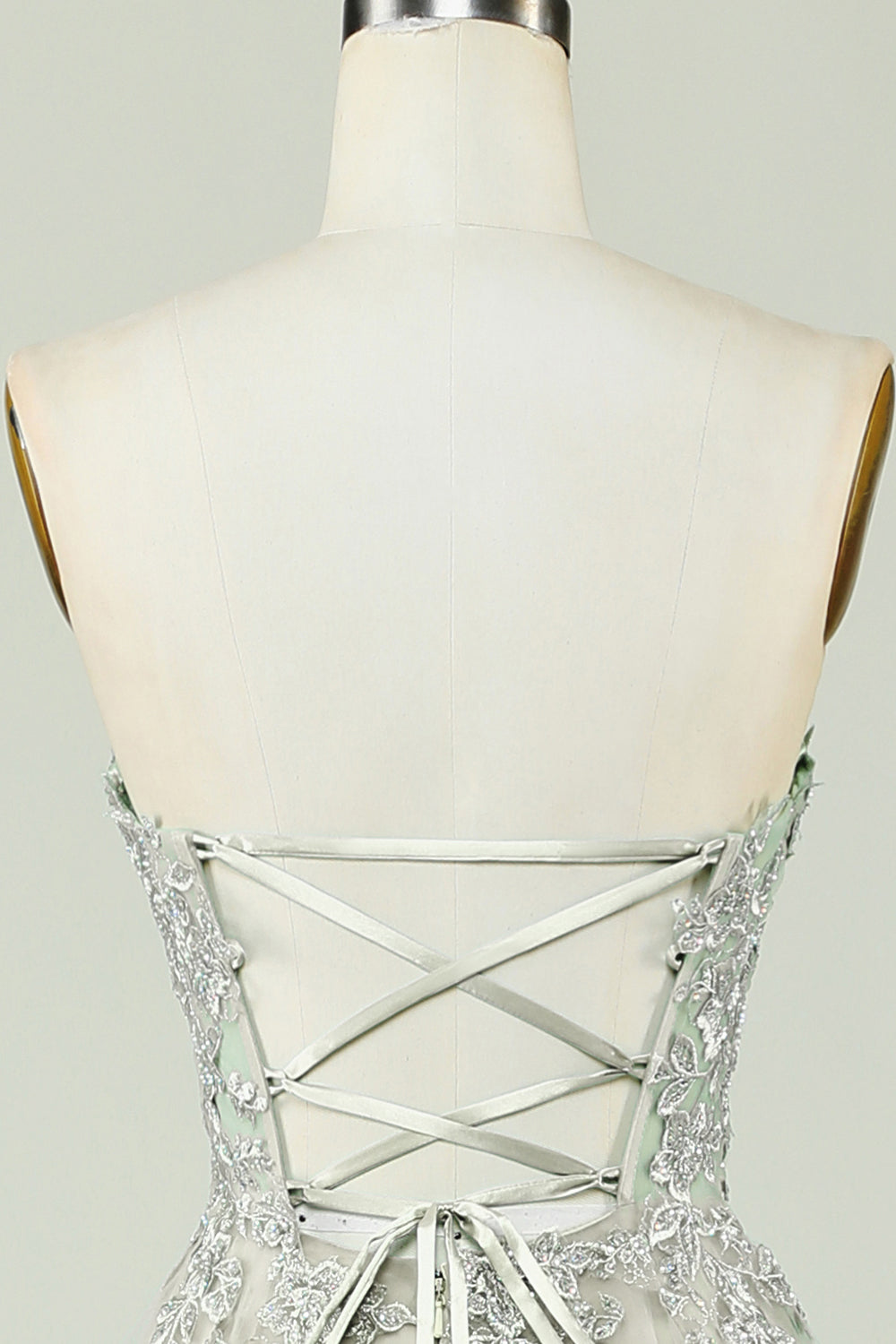 Älskling Pärlstav Ljusgrön Lång Balklänning med Slits
