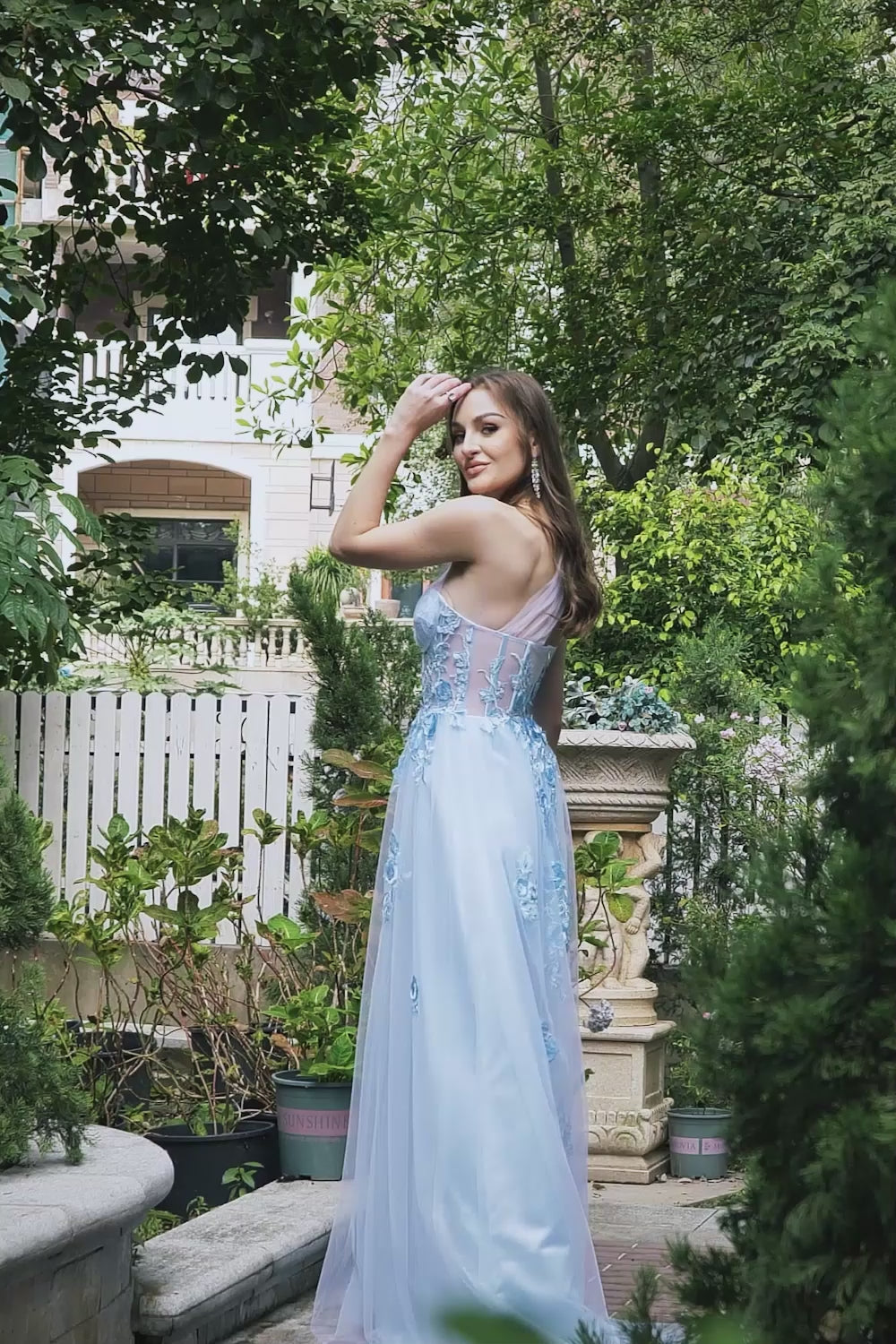 Himmelsblå En linje En axel lång balklänning med applikationer