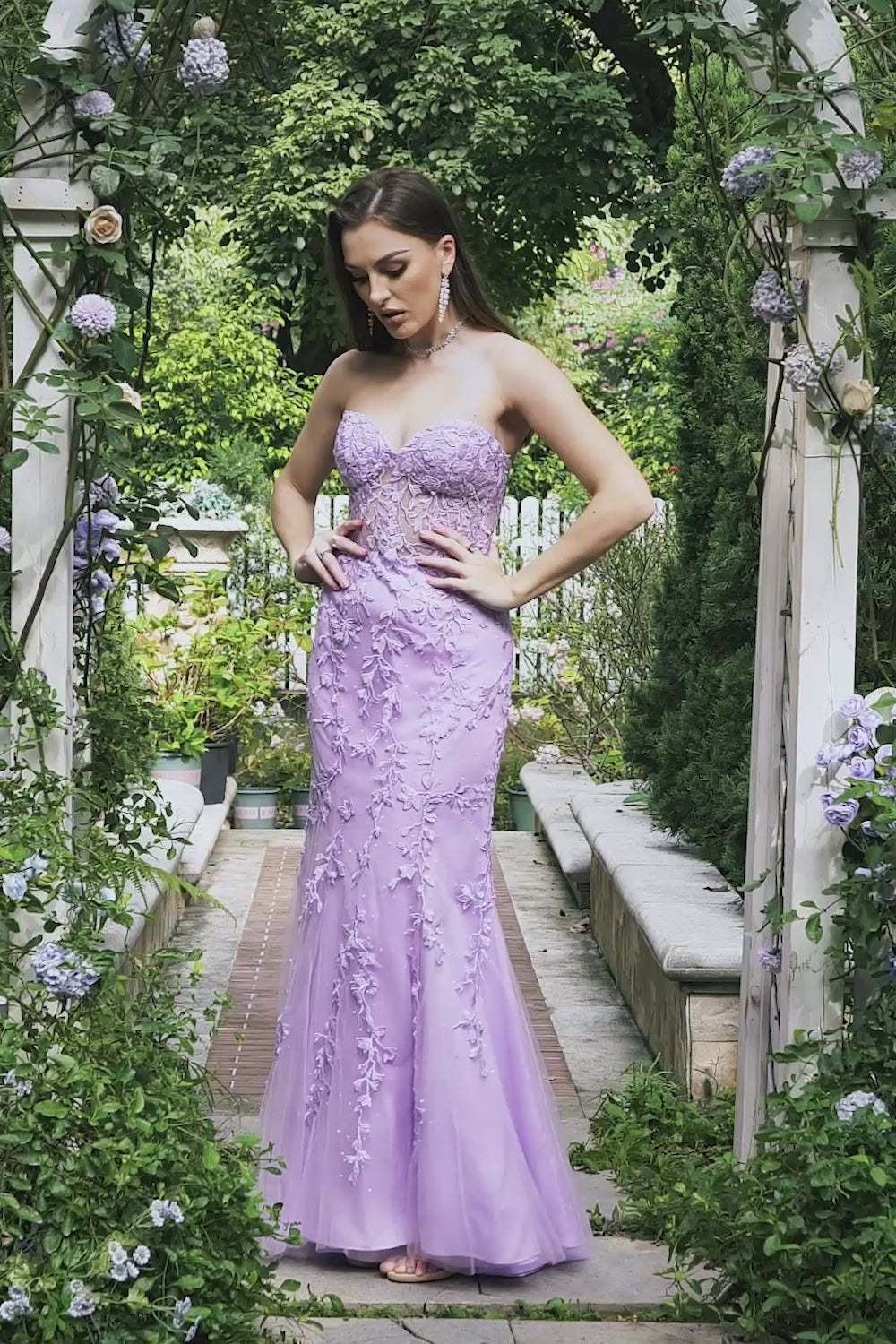 Sweetheart Urringning Sjöjungfru Lång lila balklänning med applikationer