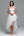 Vit Cowl Hals Satin Hög-Låg Repetition Middag Klänning