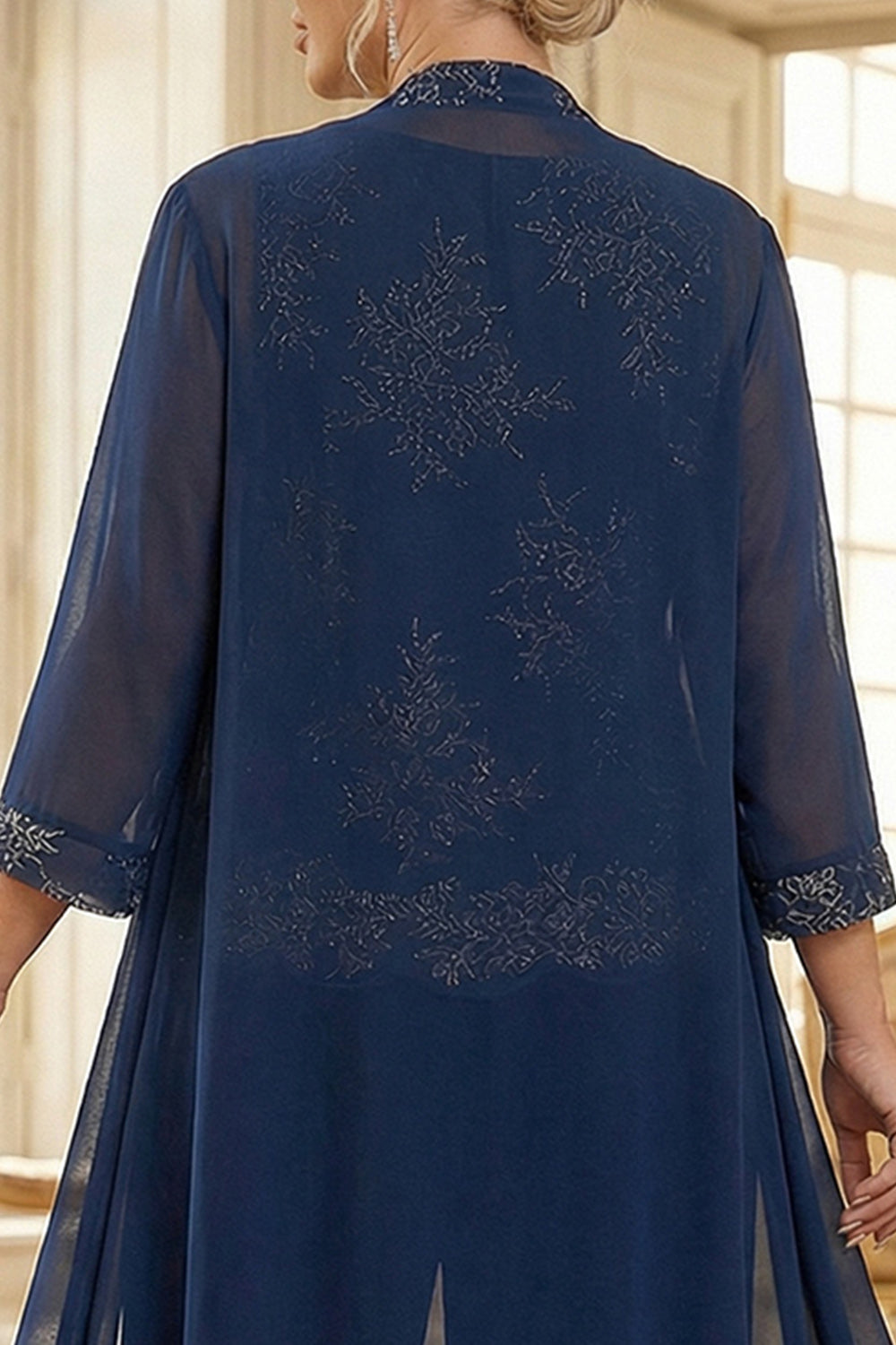 Marinblå 3-delade broderade Mother of the Bride-byxdräkter