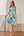 Grön Vit Prickig Vintage Klänning med Kort Ärm