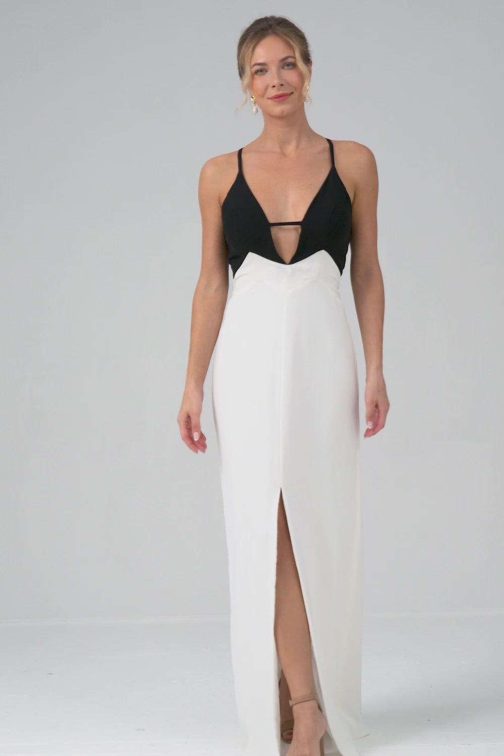 Svart Vit Slida Spaghetti Remmar Lång Prom Klänning Med Front Split