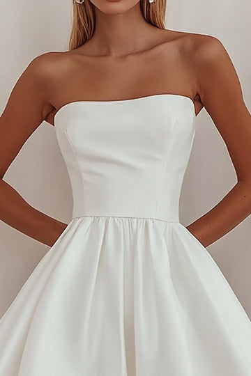 Axelbandslös En linje Vit Examensklänning Med Spalt