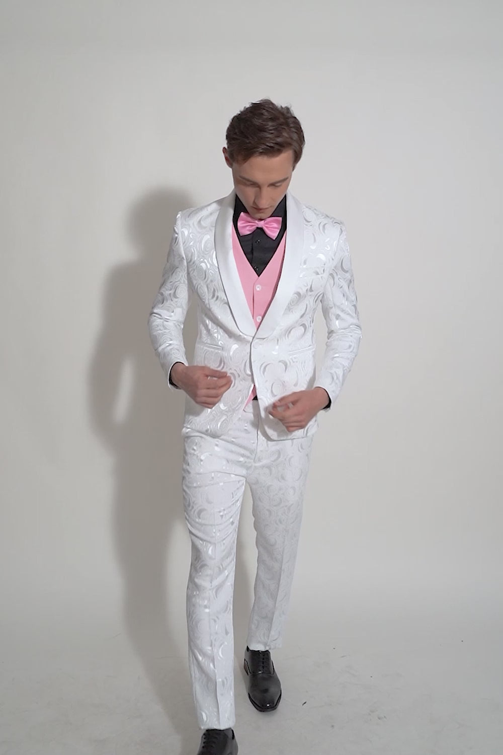Vit Jacquard Satin 2-Delat Sjal Lapel Kostym Herr