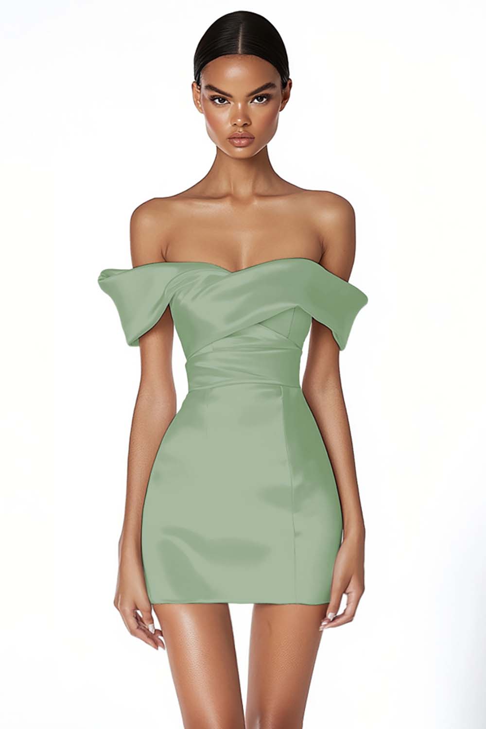 Off The Shoulder Vit Satin Bodycon Examensklänning