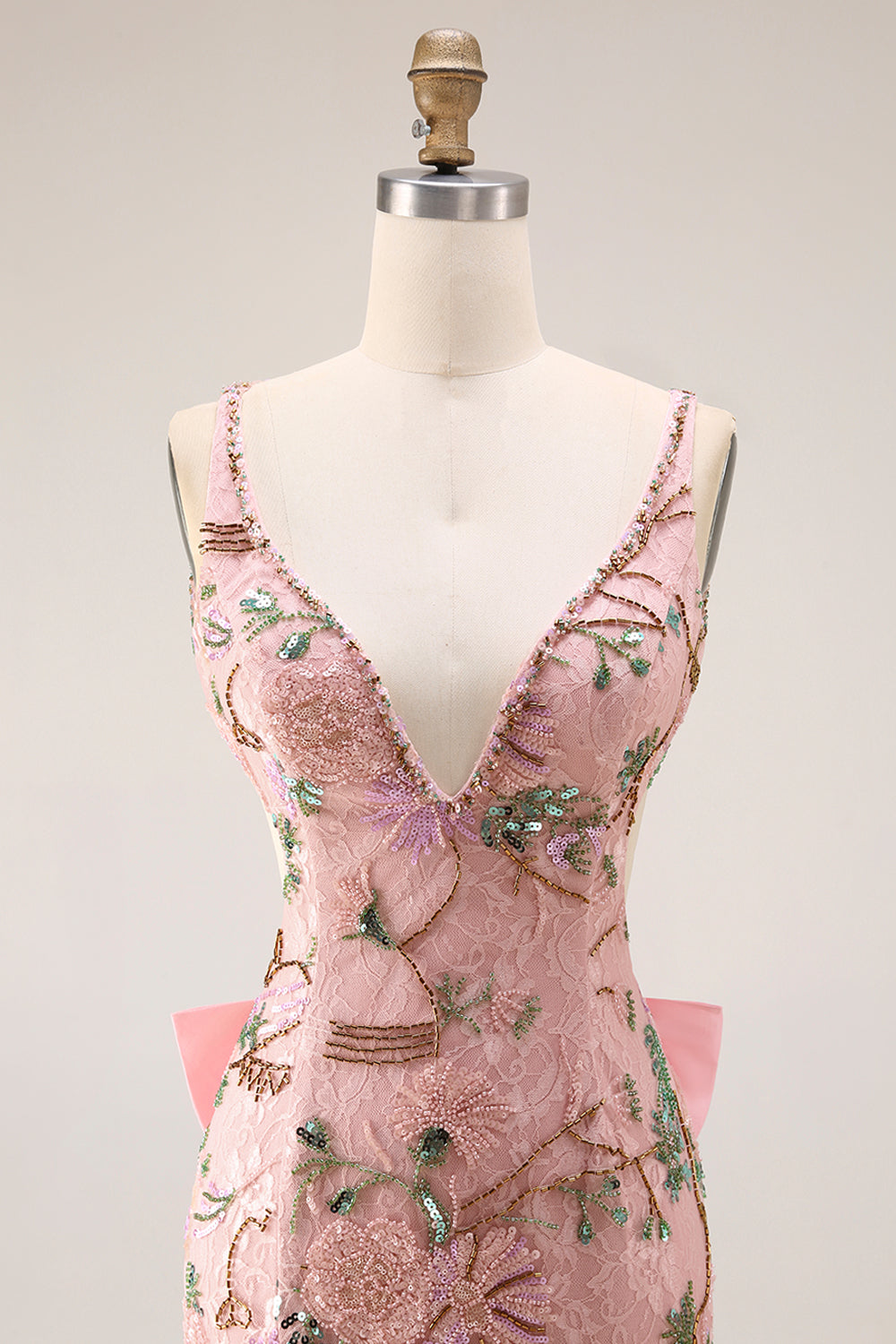 Figursydd pärlprydd paljetter med öppen baksida lång blommig balklänning med avtagbar rosett