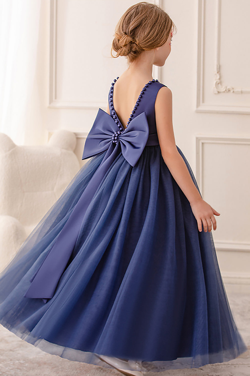 Vit A Line Ärmlös Bowknot Blomma Flicka Klänning Med Pärlor